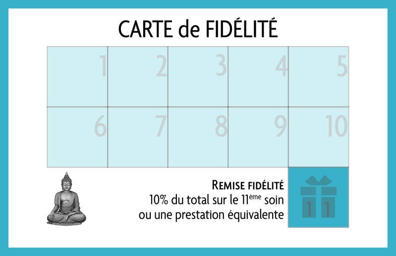 🔹forfait : 5 massages identiques achetés, le 6ème offert